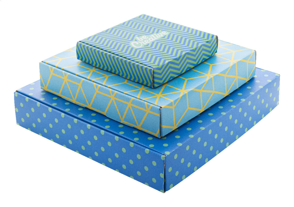 Egyedi gyártású, full-colour nyomtatott, hullámkartonból készült vékony ajándékdoboz öntapadós szalaggal. Lapra szerelve szállítjuk. Minimális rendelési mennyiség: 50 db.