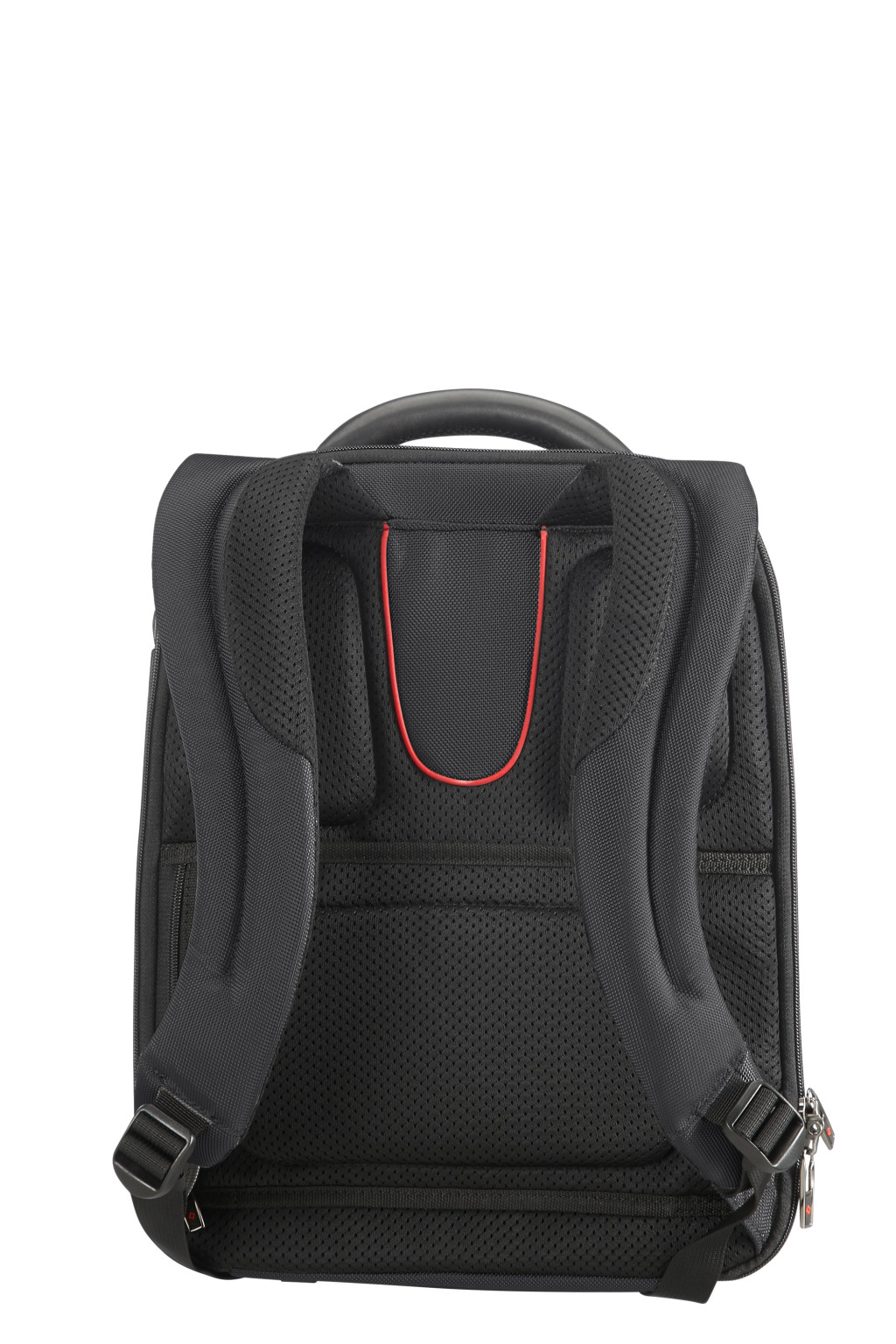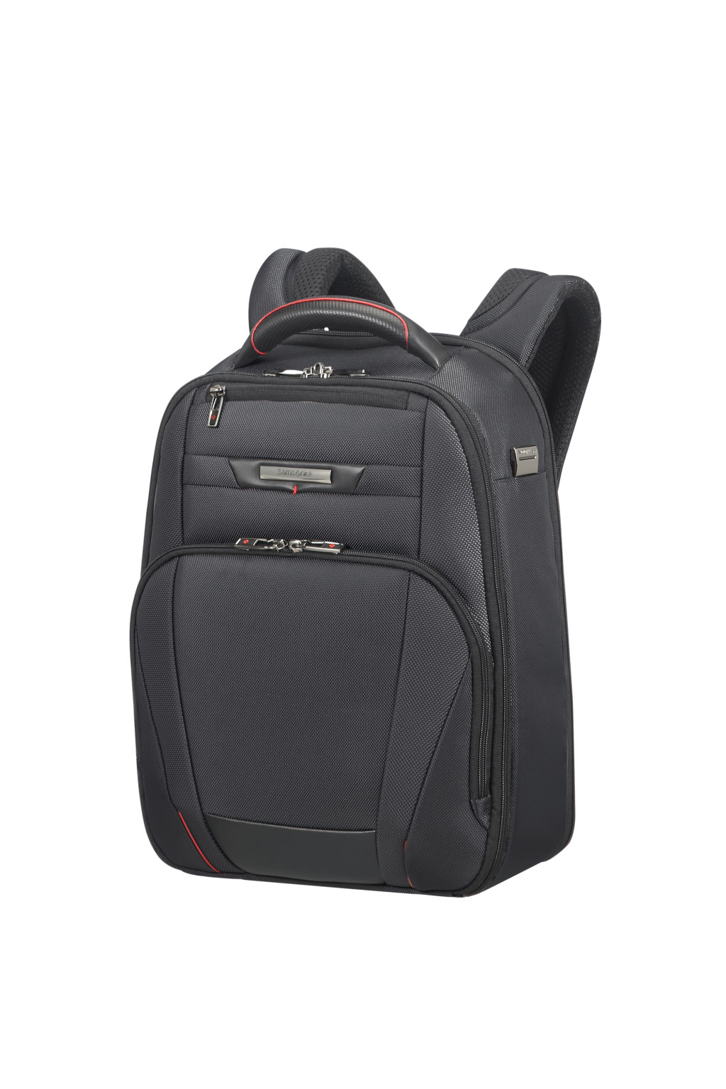 Samsonite könnyű súlyú, laptop hátizsák, nappa bőr díszítéssel, egy elűlső cipzáros zseb, egy beépített fogantyú, egy hátsó zseb a bőröndhöz való rögzítésére, két ergonómikus állítható vállpánt, egy belső párnázott laptop rekesz memoria habbal elátva, egy párnázott tablet rekesz. Súly: 1.2 kg. Űrtartalom: 14 L.