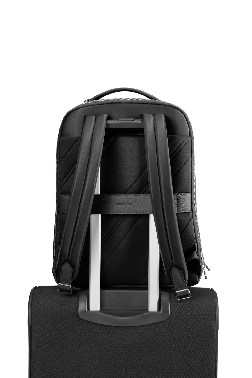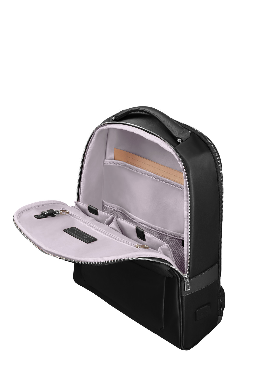 Samsonite puhafedeles női laptop hátizsák, egy felső beépített fogantyú, egy elülső cipzáros zseb, két állítható ergonomikus vállpánt, hátsó zseb a bőröndhöz való rögzítéséhez, belső laptop 14.1" és táblagép 10.5" rekesz. Űrtartalom: 13.0 L. Súly: 1.0 kg.