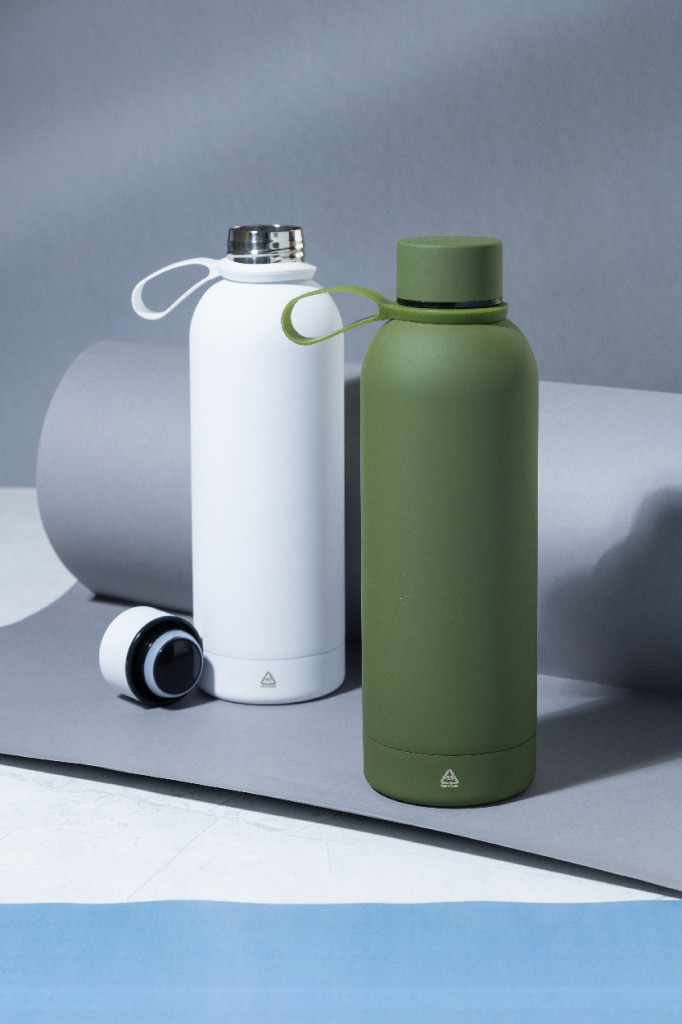 Duplafalú, újrahasznosított rozsdamentes acélból készült termosz gumírozott bevonattal és szilikon fogantyúval, 500 ml.