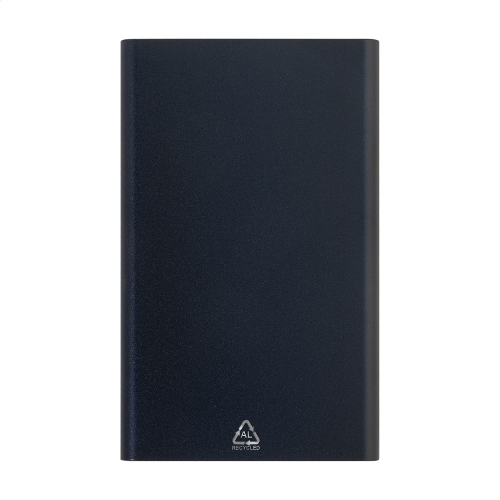 USB power bank újrahasznosított alumínium borítással és 4000 mAh-s akkumulátorral. 1 USB és 1 USB-C töltő porttal. USB-C bemeneti porttal. USB töltőkábellel szállítjuk.