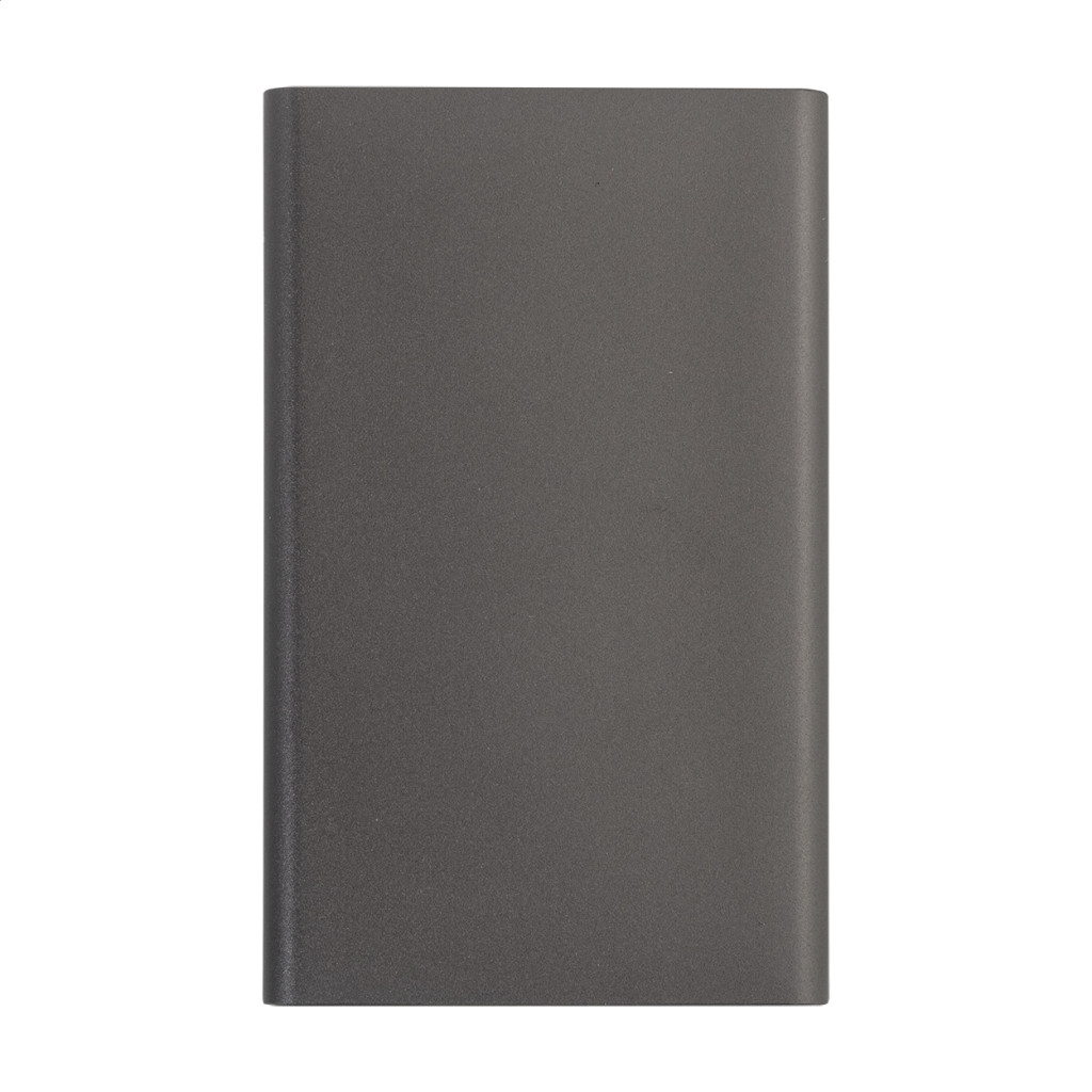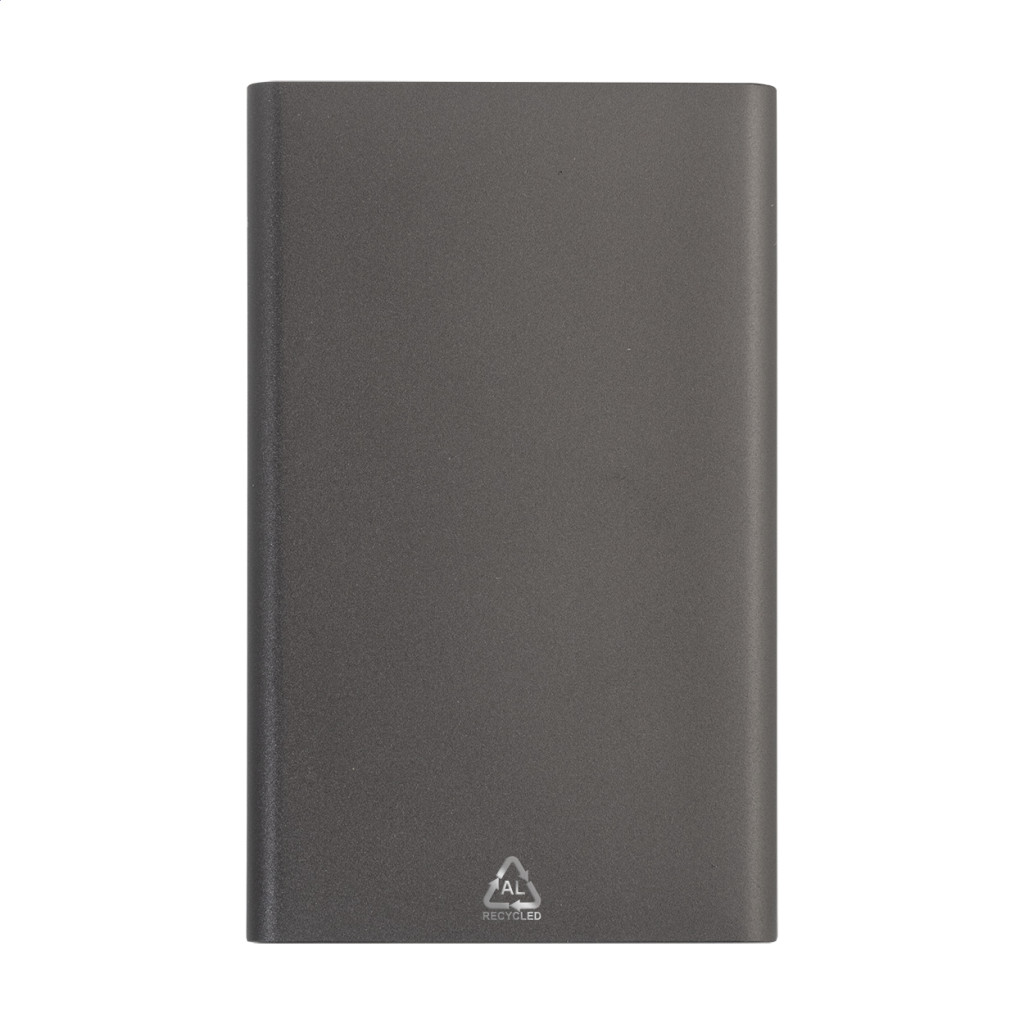 USB power bank újrahasznosított alumínium borítással és 4000 mAh-s akkumulátorral. 1 USB és 1 USB-C töltő porttal. USB-C bemeneti porttal. USB töltőkábellel szállítjuk.